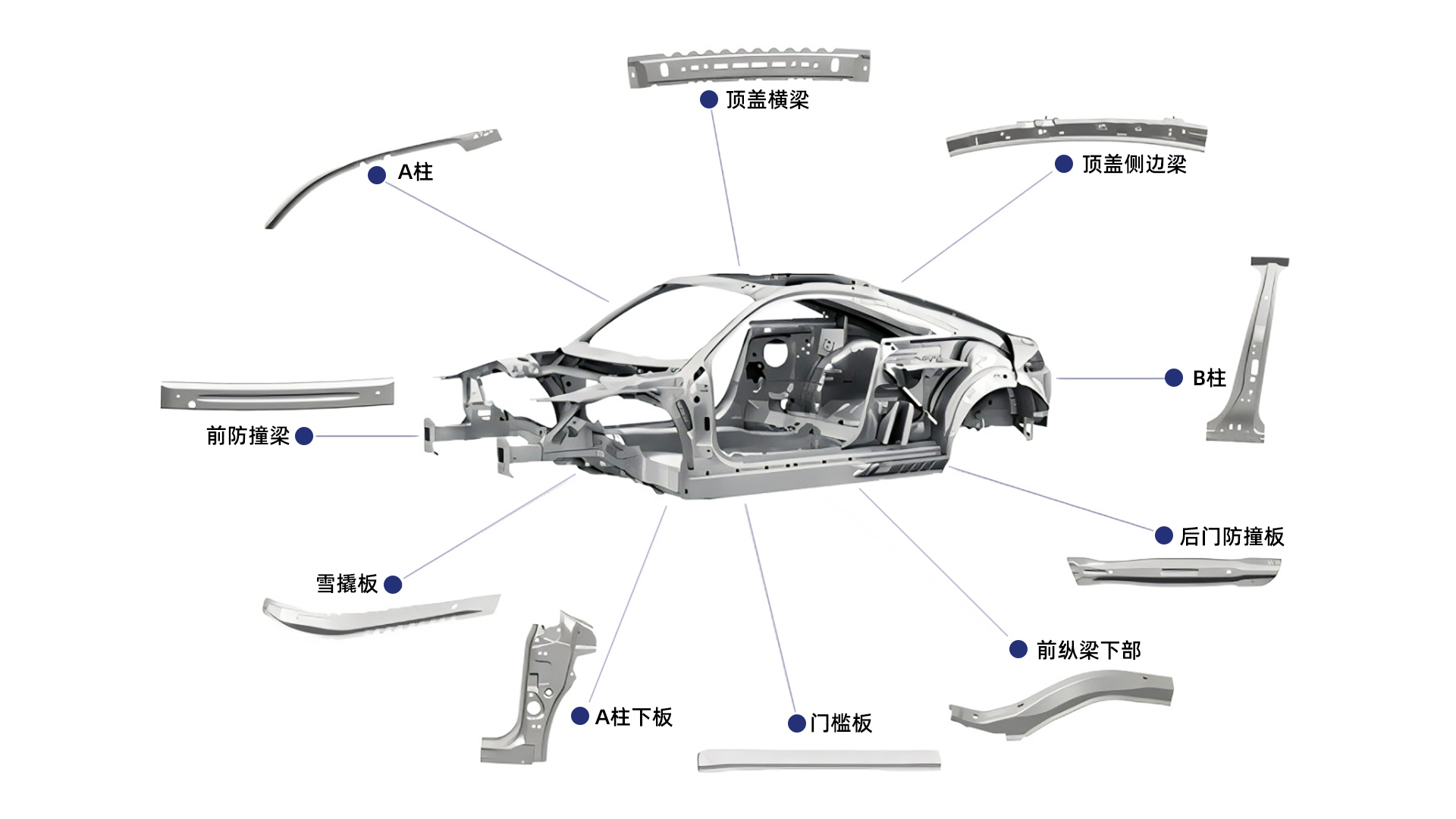 可应用于汽车A/B柱、前后防撞梁、纵梁、座椅滑轨、门槛加强板等几十种汽车零件的加工。