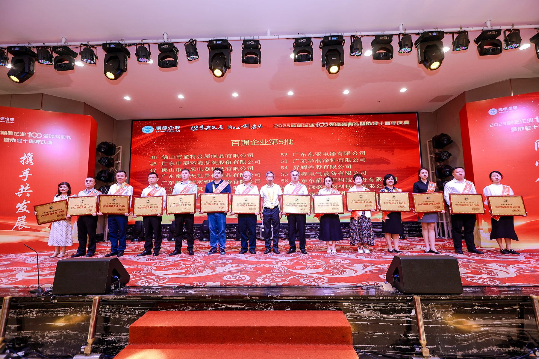 1018日,由顺德区企业联合会、顺德区企业家协会主办的“2023顺德企业100强颁奖典礼举行,活动现场重磅发布顺德企业100顺德民营制造企业100两大榜单。两大榜单综合展示了顺德的企业实力、城市竞争力以及城市形象。上榜企业不仅是顺德区经济发展的重要支撑力量,更是各企业前进的标杆。